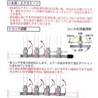 | 特長 | ●内径4mmチューブ(外径6mm)用の多分岐連結コックです。 ●各コックをひねって流量調節、また、サイドにあるゴムキャップは取り外し・交換が可能です。 ●分岐が多いほどよりパワーの強いエアーポンプが必要です。また、強ければ強いほど調整がしやすくなります。 |