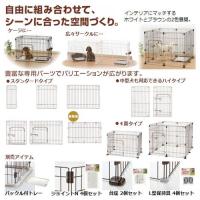 4面セットのサークルに本シリーズを加えて接続することで、ペットの大きさ、お部屋の広さ、形に合わせてお好みの形に組み立てることができるようになります。