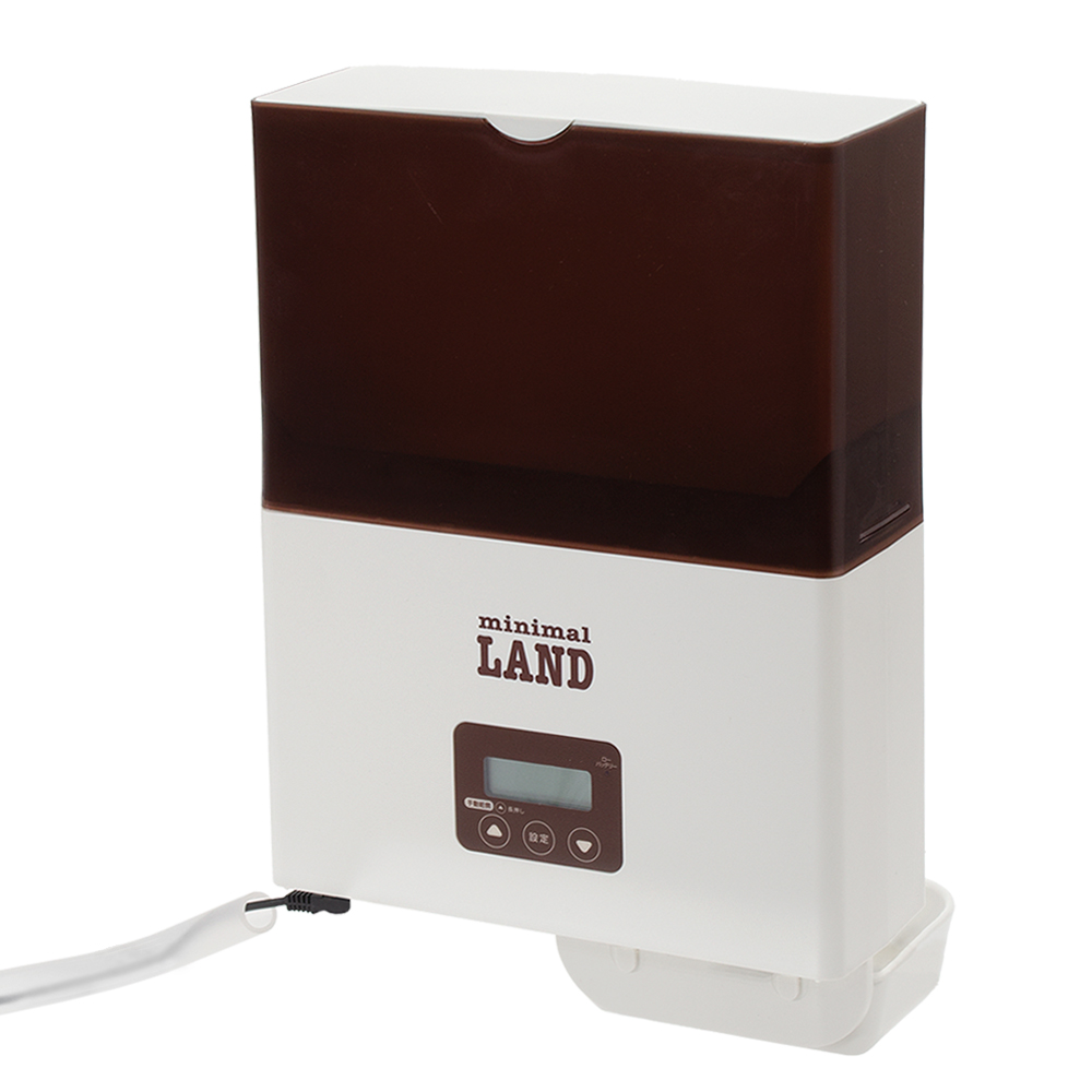 | 仕様 | 電源:アダプター式/乾電池式(単2アルカリ乾電池3本) 定格電圧:DC5V 定格消費電力:作動時約0.36W/待機時約0.036W ACアダプター:入力100V(50/60Hz)/出力5V 1A 給餌設定:1分単位最大4回(24時間リピート) 給餌量(目安):約4〜80g(4g単位、0g設定可) ※ペレット750g(2.3L)使用の場合 時計表示:24時間表示 |
