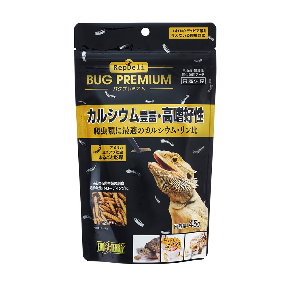 | 特長 | ●アメリカミズアブの幼虫をそのまままるごと乾燥させた爬虫類用の副食です。 ●アメリカミズアブ幼虫は、高タンパクで必須アミノ酸が豊富なだけでなく、爬虫類の健康に必須のカルシウムを豊富に含みます。 ●餌に含まれるカルシウムとリンの比率は、トカゲ類ではリン1に対しカルシウムが1〜2が望ましいとされていますが、多くの餌昆虫は、カルシウムよりリンが多い傾向にあります。アメリカミズアブ幼虫はカルシウムをより多く含み、爬虫類にとって理想的なバランスになっています。 ●爬虫類の多くは自然界では様々な昆虫を食べており、飼育下でも色々な種類の餌を与えることが理想です。コオロギやデュビア等を餌として与えている生体、人工飼料を与えている生体に、普段の餌にプラスして与えてください。 ●本製品はパーム種子などを餌にクリーンに育てたアメリカミズアブ幼虫をそのまま乾燥させており、保存料等も一切使用していませんので、生体に安心して与えられます。 ●昆虫食・雑食性の爬虫類に広く与えることができます。コオロギ等の活餌の餌にもお使いいただけますので、ガットローディングにも最適です。 | ||||||||||||
