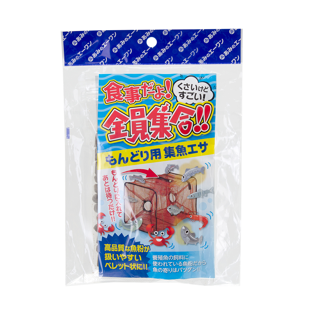 | ご注意 | ※本製品は集魚エサです。本来の目的以外には使用しないでください。 ※決められたルールを守り、もんどりの禁止区域や危険な場所では使用しないでください。 ※自然はみんなの物です。乱獲は絶対におやめください。 |