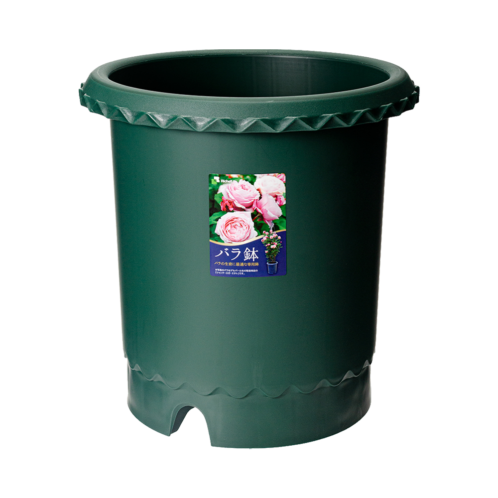 | 特長 | ●傾斜の少ない深めの円筒形で根が張りやすく、移植もしやすい、バラ作りに適した専用鉢です。 ●大きなヘリ手をかけやすく、適した環境への移動に便利です。 ●傾斜のある排水穴で水の通りがよく、排水性に優れています。 ●上げ底害虫の侵入を防ぎ、コンクリートの熱などから根を守ります。 |