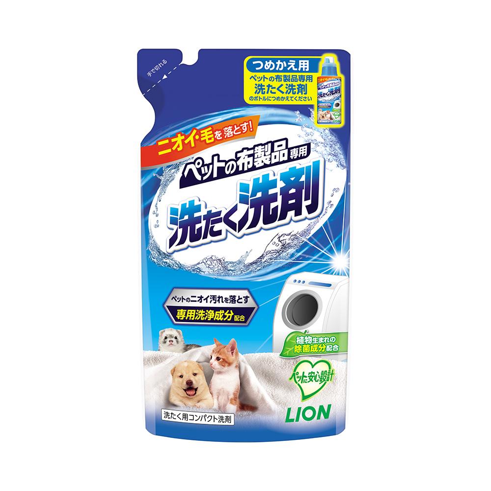 | 特長 | ●「ライオン ペットの布製品専用 洗たく洗剤」の詰め替え用です。 ●気になるペット特有のニオイ・毛を落とす、ペット用洗浄成分を配合しました。 ●毛を落ちやすく、さらに付着しにくくする、離毛促進剤を配合。繰り返し洗うことで毛が付着しにくくなります。 ●抗菌効果により、ニオイの原因となる菌の増殖を防ぎます。 ●すすぎ1回でok!ドラム式洗たく機でも使えます。 ●植物生まれの除菌成分を配合、洗濯物をペットが舐めても安心です。 ●柔軟剤・衣料用漂白剤もいつもどおり使えます。 |