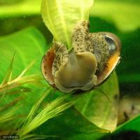 | 繁殖 | 水槽内でも1mm〜2mm程の卵嚢を水槽壁面や流木などの基質に産みつけますが、孵化した幼生は川を降りて海で浮遊生活を送った後、幼貝になって川に遡上するという生態を持ち、水槽内での繁殖はほぼ不可能です。 水槽壁面などについた卵嚢が観賞価値を低下させる場合はスクレーパーなどで取り除くと良いでしょう。 |