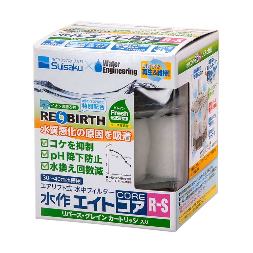 | 特長 | ●エアリフト式の水中フィルターです。 ●ご好評の水作エイトコアに、株式会社ウォーターエンジニアリングが開発したろ過材「リバース」が入りました。 ●元来の生物ろ過に加え、餌などから溶け出た飼育水中の過剰な物質を除去することで、水質を維持します。 |