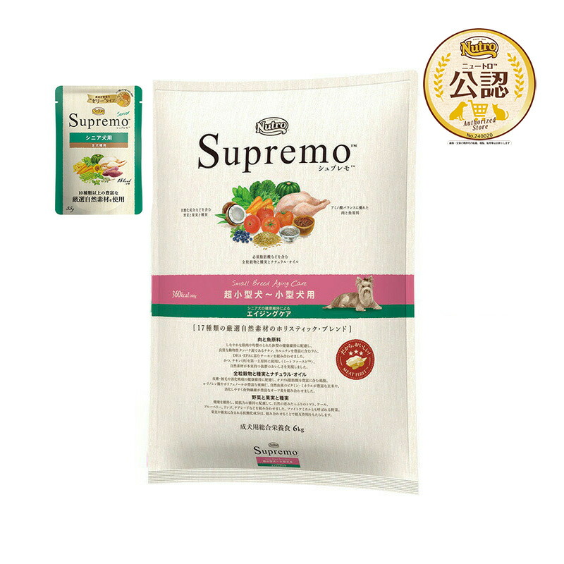 | Supremo 超小型犬〜小型犬用 シニア犬用(エイジングケア) 6kg + パウチ 1袋 おまけ付 | |