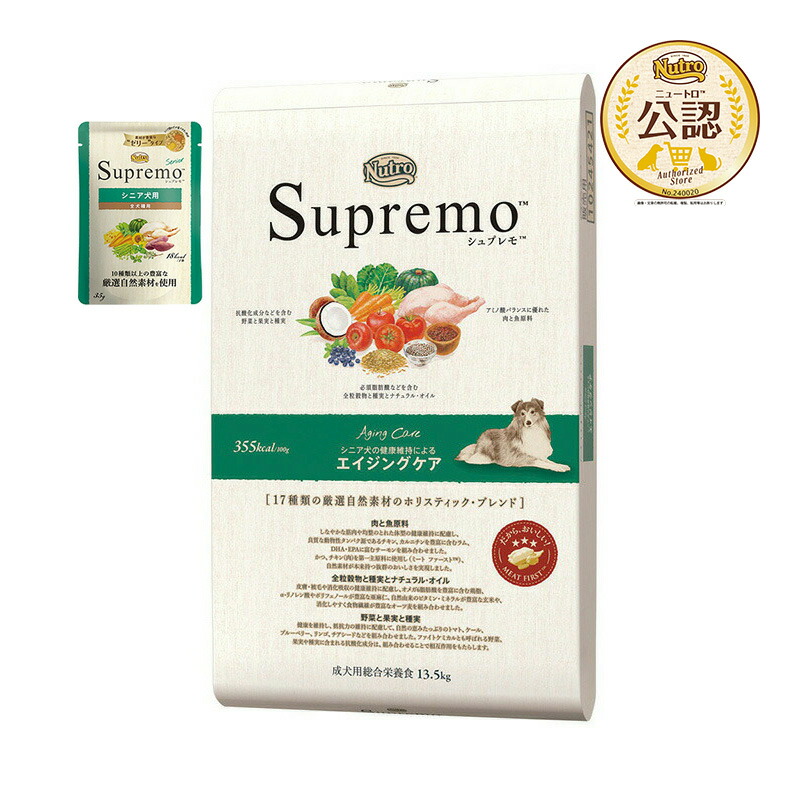 | Supremo エイジングケア シニア犬用 13.5kg + パウチ 1袋 おまけ付 | |