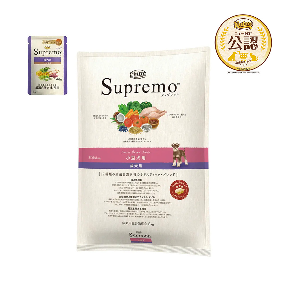 | ニュートロ シュプレモ 小型犬用 成犬用 6kg + シュプレモ ミニパウチ おまけ付 | |