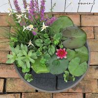 (ビオトープ)睡蓮セット(睡蓮赤+メダカ睡蓮鉢グレー+ヒメダカ+浮き草他)1セットオリジナル 本州四国限定