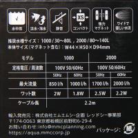 | 仕様 | 対応ガラス厚:10mm以下 推奨水槽サイズ:30−80L 定格電圧/周波数:100V 50/60Hz 最大流量:850L/H(50Hz) 1000L/H(60Hz) ワット数:2W(50Hz) 1.8W(60Hz) |