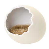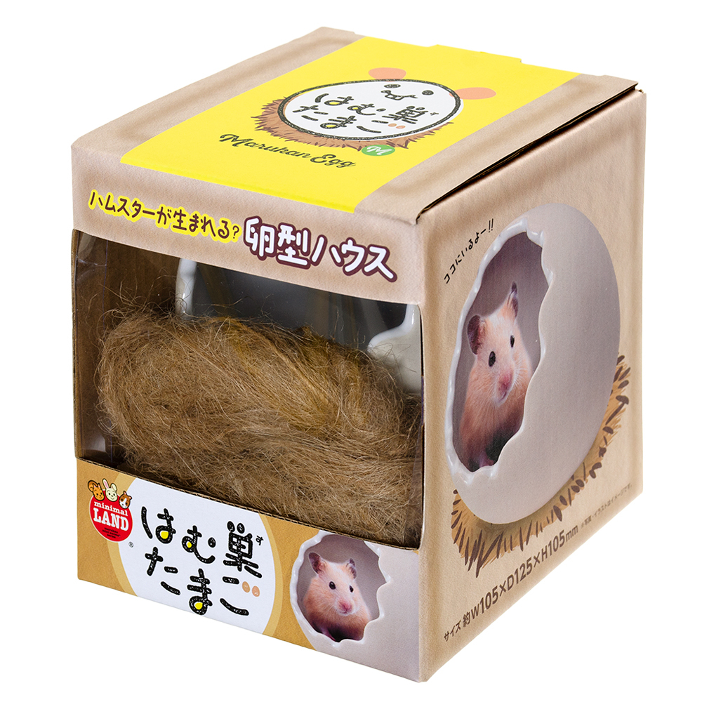 | 特長 | ●ハムスターが顔を出すと卵から生まれたように見える陶器製ハウスです。 ●陶器製なので掃除が簡単でいつも清潔にご使用いただけます。 ●巣材入りで、卵の中に巣材を敷くとふんわりベッドになります。 |