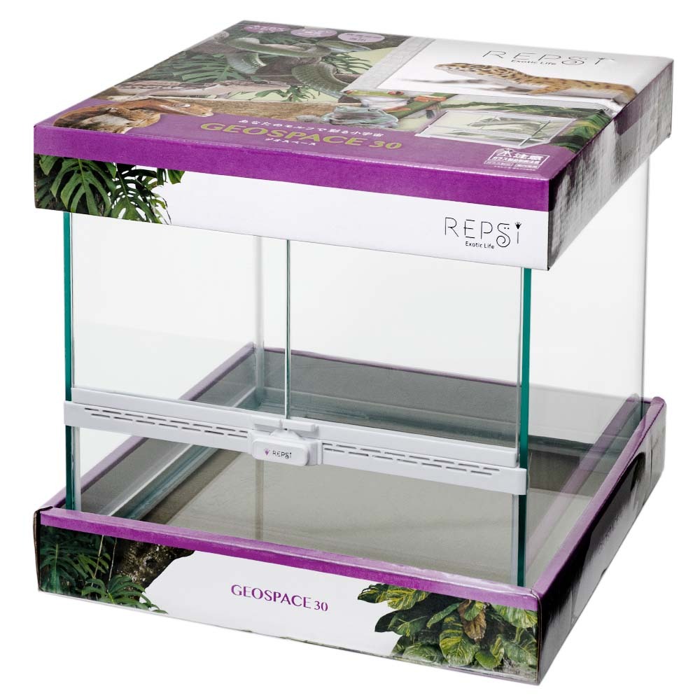 | 特長 | ●扱いやすい30cmキューブタイプの爬虫類、両生類飼育ケージです。 ●フロント換気口を採用しており、通気性がよくくもりにくい仕上がりです。 ●ペットとのふれあいやお手入れがしやすい、前面ダブルドア方式です。 ●天面はフルオープン式で、便利な電源コード穴付きです。 |