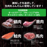 | 原材料 | 鶏肉、鹿肉、大豆たん白、ポテト、鮭、おから、油脂類(ごま油、小麦胚芽油、エゴマ油)、酵母抽出物(アミノ酸含有)、鶏レバーパウダー、チーズ、共役リノール酸含有油脂、酵母類(亜鉛、ヨウ素、銅、マンガン)、乾燥酵母細胞壁、オリゴ糖、チキンエキス(イミダゾールジペプチド含有)、パン酵母(セレン含有)、ソルビトール、グリセリン、ミネラル類(カルシウム、ナトリウム、カリウム、鉄)、ph調整剤、保存料(しらこたん白:サケ由来)、ビタミン類(コリン、B12)、酸化防止剤(ビタミンE)、乾燥殺菌乳酸菌体末 |