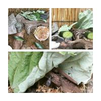 | 特長 | ●天然の国産葛の葉っぱです。 ●飼育ケース内を自然な環境にレイアウトできます。 ●昆虫マットの保湿や昆虫の隠れ家として、さらに仰向け死などの事故を防ぎます。 ●栄養価に優れるため特にマツムシ、コオロギの栄養補給に最適です。 ●収穫後、オゾン洗浄後乾燥処理を行っており清潔な状態の葉で安心です。 ●着色料や保存料は使用しておりません。 |