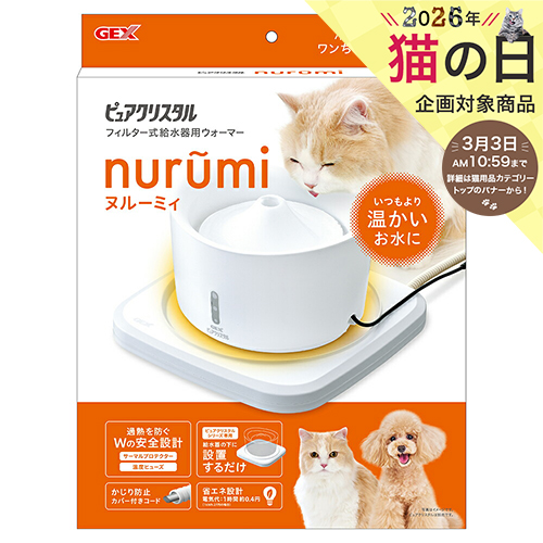 | 特長 | ●フィルター式給水器「ピュアクリスタル」用のウォーマーです。 ●冷たいお水が苦手なワンちゃんネコちゃんにいつもより温かいお水を提供します。 ●かじり防止カバー付きコード(フレキシブルチューブ)を採用しました。 ●電気代:1時間約0.4円(1kWh=27円の場合)の省エネ設計です。 ●間違った使用方法などにより本体が異常高温になった場合、サーマルプロテクターが働き通電を制御します(本体の温度が下がれば通常通り動作します)。 ●サーマルプロテクターが故障した時も、異常高温時は温度ヒューズで通電を遮断します(温度ヒューズが働くと再使用できません)。 |