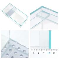 | サイズ(約) | ●スーパークリア アクロ オーバーフロー 2層式濾過槽 幅60×奥行30×高さ30cm(ガラス厚:5mm) フランジ幅:2cm 区画(大):幅43×奥行き26cm(フランジ分考慮) 区画(小):幅13×奥行き26cm(フランジ分考慮) 水容量(約):54L ●スーパークリア アクロ オーバーフロー ウールボックス 幅28.5×奥行15×高さ17cm(パイプ含まず、ガラス厚:5mm) ●塩ビ パンチングボード 大:幅13.5×奥行き28.5cm 厚さ5mm | 小:幅24×奥行き13.5cm 厚さ5mm
