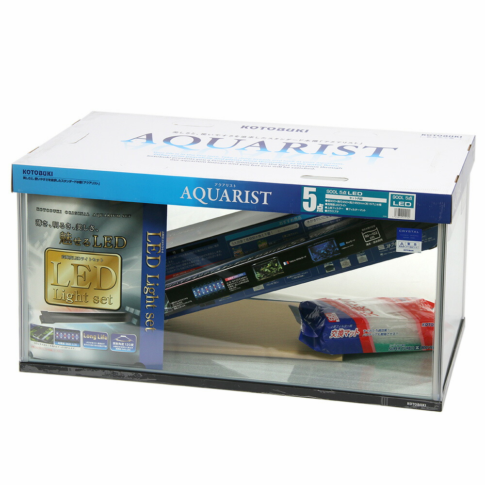 | 特長 | ●扱いやすいフレーム付90cmガラス水槽「アクアリスト900」に高輝度LEDライトと上部式フィルターがついたセットです。 ●アクアリスト900は、コトブキ工芸の工場(奈良県)にて製造している日本製の水槽です。 ●LED照明「コトブキ フラットLED SS 900 ブラック」は、「究極の薄さ」と「自然な明るさ」を追求したLED照明です。 ●1830lmと照射角度120度で水槽全体を明るく照らします。 ●LEDカラーはNature White/Blueの2パターン切替スイッチ式です。 ●白色LEDをメインに赤色と青色LEDの発光波長を加え、より自然な光を実現し、水草の光合成を促します。 ●上部式フィルター「コトブキ スーパーターボ Z+ 900」は、数々の機能で使いやすさを極限まで追求した90cm水槽用のフィルターです。 ●ダム式とシャワー式のダブルろ過方式で効果抜群です。 ●温度ヒューズ内蔵でポンプの故障により大電流が流れた場合などに即座に電源をカットし、安全を確保します。 ●基本が詰まった、大変扱いやすいセットなのではじめての水槽の立ち上げにもイチオシの水槽セットです! |