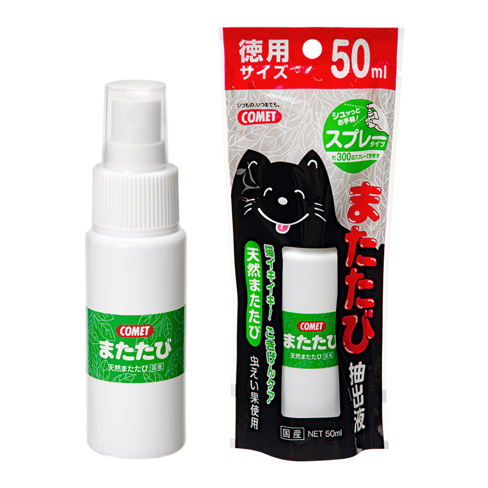 | ご注意 | ※本品は猫用のまたたびです。他の目的では使用しないでください。 ※合成保存料、防腐剤を一切使用していませんので、容器のスプレー部分を絶対に外さないでください。 ※使用後は冷蔵庫で保管してください。 ※お子様が誤って飲まないように手の届かない所に保管してください。 |