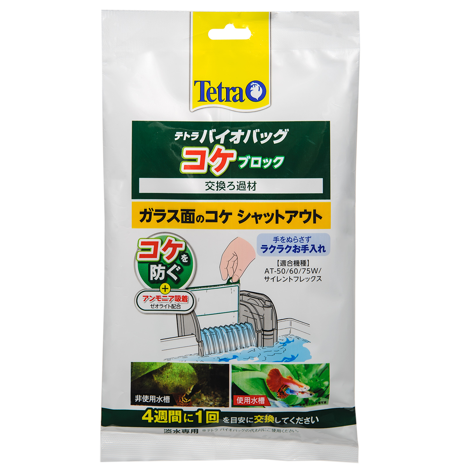 | 特長 | ●テトラバイオバッグの代わりとしてご使用いただける交換ろ材です。 ●ガラス面に付着するコケや水中のアオコの発生を防ぎ、透明でキレイな水槽を保ちます。 ●アンモニアも除去して、魚の棲み良い水にします。 |