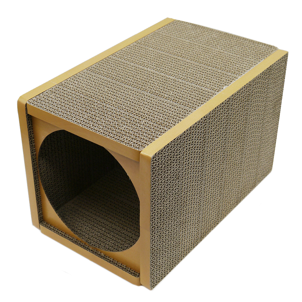 | 特長 | ●耐久性に優れたGBoardと呼ぶフラットで強力な紙パネルで作られている、つめとぎ付きキャットハウスです。 ●壁面には爪とぎがあり、ねこちゃんが喜びます。 ●標準的な体長に合わせた長さで程よく 狭いので、狭い所が大好きなねこちゃんのくつろぎのお部屋になります。 ●再生紙で作られており、サステナブルで環境にやさしい猫用家具です。 |