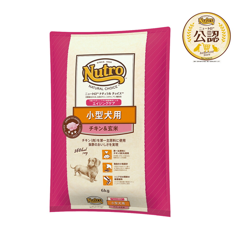 | 特長 | ●小型犬の健康維持に配慮した7歳からのシニア犬用総合栄養食です。 ●第一主原料にチキン肉を使用し、味に敏感な小型犬のために抜群のおいしさを実現しています。 ●シニア犬の関節の健康維持に必要なオメガ3脂肪酸を豊富に含むフィッシュオイルと、コンドロイチン・グルコサミンを豊富に含むチキンを原材料に使用しています。 ●リノール酸を豊富に含む鶏脂や亜鉛を配合し、皮膚・被毛の健康維持をサポートします。 ●DHAを豊富に含むフィッシュオイル配合で、脳と視力の健康維持に配慮しています。 ●尿の健康に配慮して、マグネシウムバランスを調整しています。 ●長生きの小型犬の健康を維持し、免疫力を維持するためニュートロ独自の成分を配合しています。 ●玄米やオートミールなどバランスの良い食物繊維の組み合わせで、お腹の健康維持に配慮しています。 ●芯までふやけやすい粒設計を実現しており、シニア犬のニーズに合わせてやわらかくしてあげられます。 ●小型犬でもおいしく食べられるよう粒を小さくし、噛ませるために独自の形状を工夫しています。 |