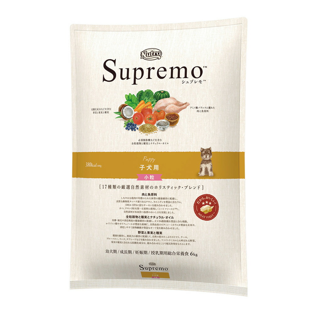 | 特長 | ●子犬の健やかな筋肉・骨の成長と、健康な脳の発育をサポートするドライフードです。 ●17種類の厳選された自然素材をブレンド。抜群のおいしさと栄養バランスを実現しました。 ●しなやかな筋肉や均整のとれた体型の健康維持に配慮し、良質な動物性タンパク源であるチキン、カルニチンを豊富に含むラム、DHA・EPAに富むサーモンを組み合わせました。かつ、チキン(肉)を第一主原料に使用し、自然素材が本来持つ抜群のおいしさを実現しました。 ●皮膚・被毛や消化吸収の健康維持に配慮し、リノール酸を豊富に含むひまわり油、α−リノレン酸やポリフェノールが豊富な亜麻仁、自然由来のビタミン・ミネラルが豊富な玄米や、消化しやすく食物繊維が豊富なオーツ麦を組み合わせました。 ●健康を維持し、抵抗力の維持に配慮して、自然の恵みたっぷりのトマト、ケール、ブルーベリー、リンゴ、チアシードなどを組み合わせました。ファイトケミカルとも呼ばれる野菜、果実や種実に含まれる成分は、組み合わせることで相互作用をもたらします。 ●自然の恵みたっぷりのトマトやクランベリー、ザクロなどの野菜と果実をブレンドしました。 |