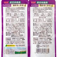 | 特長 | ●ゼリータイプの総合栄養食です。 ●2つに分けて与えられるパウチです。 ●とりささみに5つの野菜を加えました。 |