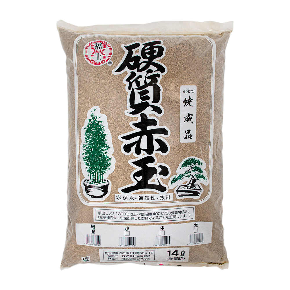 | 特長 | ●一般的に売られている硬質赤玉土とは違い、焼成している為、無菌であり、非常に硬く、粒が崩れにくい構造の単用土です。 ●通気性を長く保ち、保水性・排水性も抜群です。 ●粒の形状が残っている間は洗って繰り返し使えます。 ●マルチング材としてもお使いいただけます。 ●一般草花・盆栽・観葉植物などに使用します。一般草花には赤玉7:腐葉土3の割合で混ぜて使用します。 |
