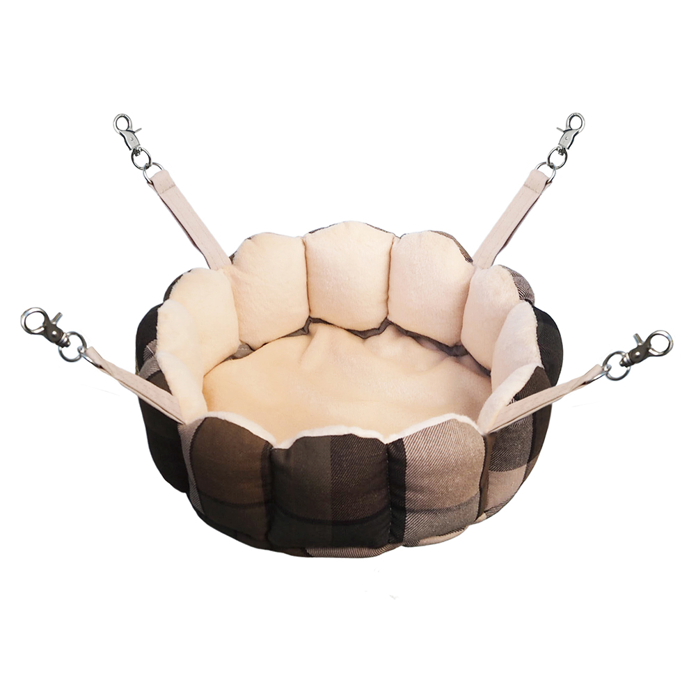 | 特長 | ●かわいいバスケットタイプのハンモックです。 ●もぐれないシンプルな作りですが、安定感のある作りなのでセカンドハンモックとして、ケージの空きスペースにおすすめです。 ●使いやすいスタンダードサイズです。 ●ケージに取り付けやすい金具付き。 |