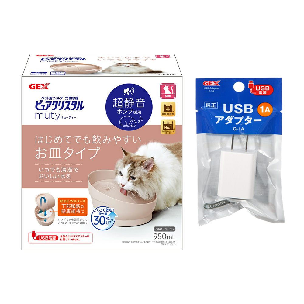| GEX ピュアクリスタル ミューティー 950mL 猫用 ミルキーベージュ+USBアダプター G−1A | |