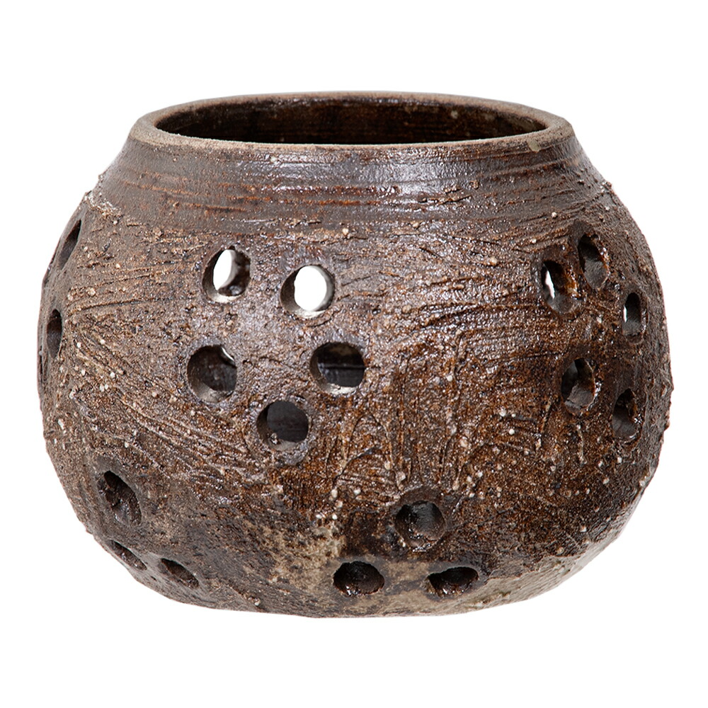 | 特長 | ●茶葉を焚いて楽しむ益子焼の茶香炉です。 ●味わい深い色合いと素朴な佇まいが魅力の益子焼と茶葉の香りで、上質な癒し空間を演出します。 ●手作りの商品ですので、発色の違いや自然なゆがみ等、ひとつひとつ違った表情を見せてくれます。 |