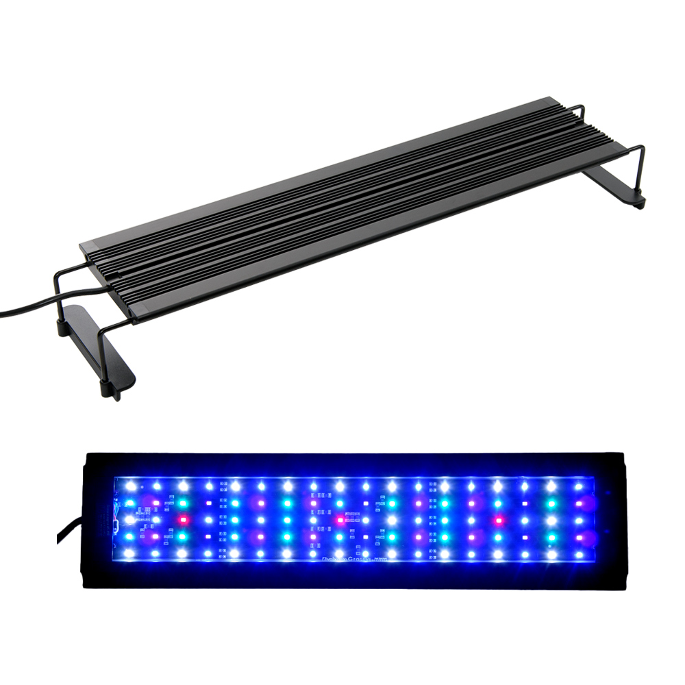 | 特長 | ●太陽の下で育むような自然な光を注げるLEDライトです。 ●サンゴへの適合性を高めるために、ワイドブルーバンドを搭載しました。 ●Grassyシリーズの特徴を引き継ぎ、光合成の適応を高める高演色LEDを採用しています。 ●光の重要な要素であるシアンchを新搭載し、明るくバランスの取れた光になりました。 ●簡単なワンタッチタイマー(6時間/8時間/10時間)搭載し、好みの色に合わせて使用可能です。 ●別売の「Grassy Flat Timer」グラッシーフラットタイマーを接続することで、24時間で8ポイントの明るさ設定することができます。明るさは各ポイント間で線型変化させるので生きものにやさしく、不意の飛び出しの防止にもつながります。 |