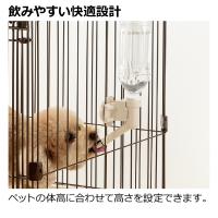 | 適応可能製品 | ●ペット用スライド木製サークル ●ペット用木製サークル ●ペット用木製レギュラーサークル ●ペット用木製ケージ ●ペット用ジョイントサークル ●ペット用リビングケージ ●ペット用プラスチックケージ など | 特長 | ●飲料水などのペットボトルを利用して、給水器として使用できます。 ●ペットに合わせて高さを自由に調節できます。 ●厚みのあるプラスチックケージ(16mm未満)でもしっかりと取り付けできます。 |