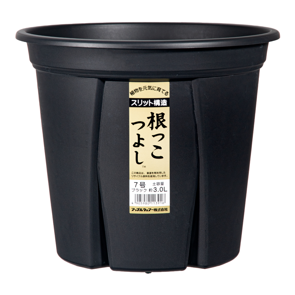 スリット鉢 アップルウェアー 根っこつよし 7号 ブラック 植木鉢 黒