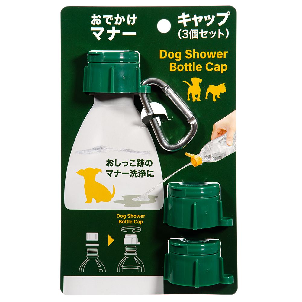 | 特長 | ●ペットボトルに付けておしっこ跡に水をかけ洗浄出来るマナーキャップです。 ●便利なカラビナ付きです。 |