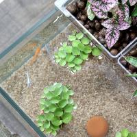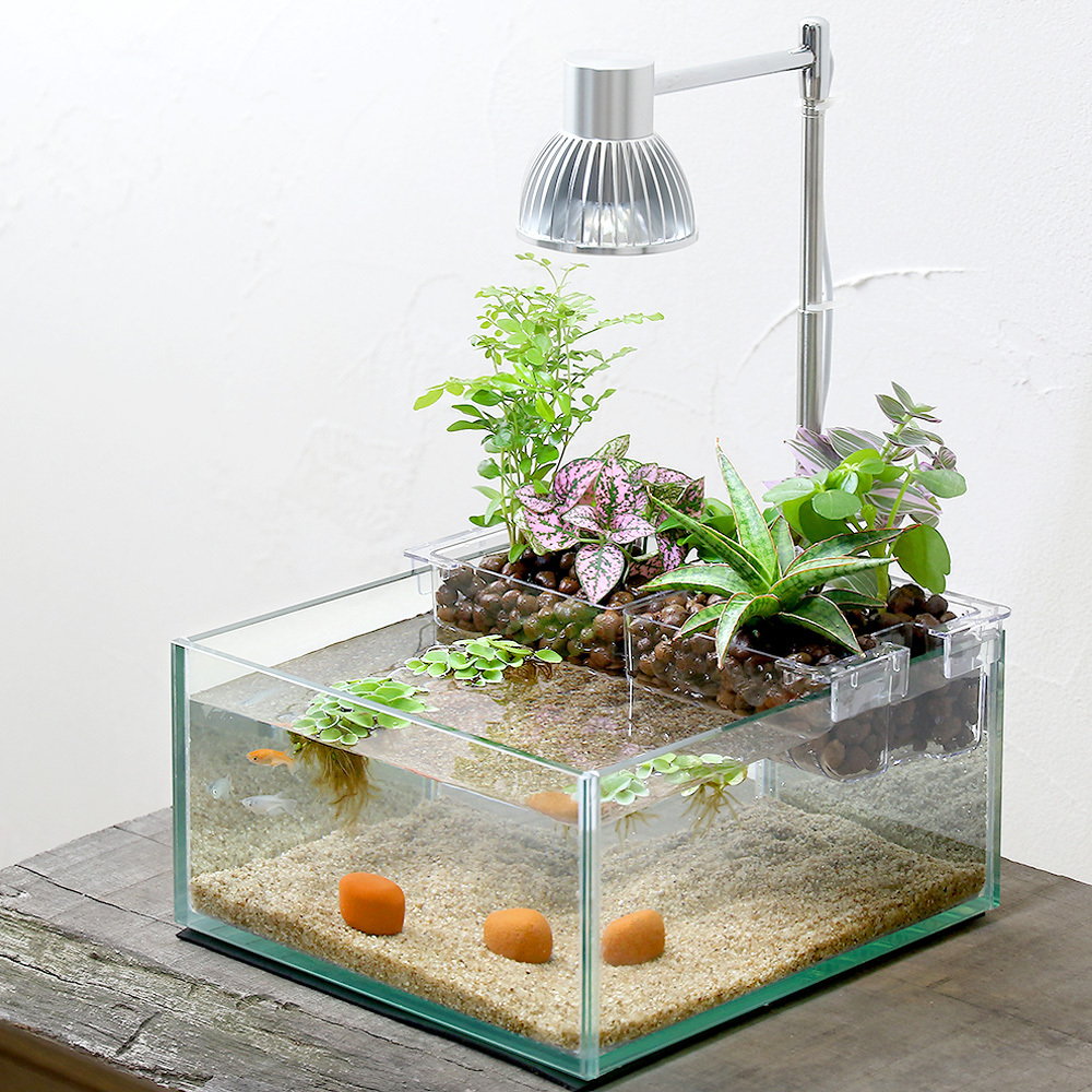 | 特長 | ●ハイドロカルチャーとアクアリウムがひとつに。こころ潤う癒しメダカ付きの水槽セットです。 ●メダカだけでなく植物もセットになっており、手軽にエコなアクアリウムがスタートできます。 ●部屋の中に水辺があると、心地よい暮らしが演出できます。 ●メダカと観葉植物が両方楽しめるフラット型のガラス水槽です。 ●観葉植物の力で飼育水を浄化するエコサイクル方式です。 ●幅19×奥行21cmと大変小型で、ちょっとしたスペースでも楽しめます。 ●観葉植物の為の専用プランターや土、メダカの水槽を彩る砂があらかじめ付属しております。 |