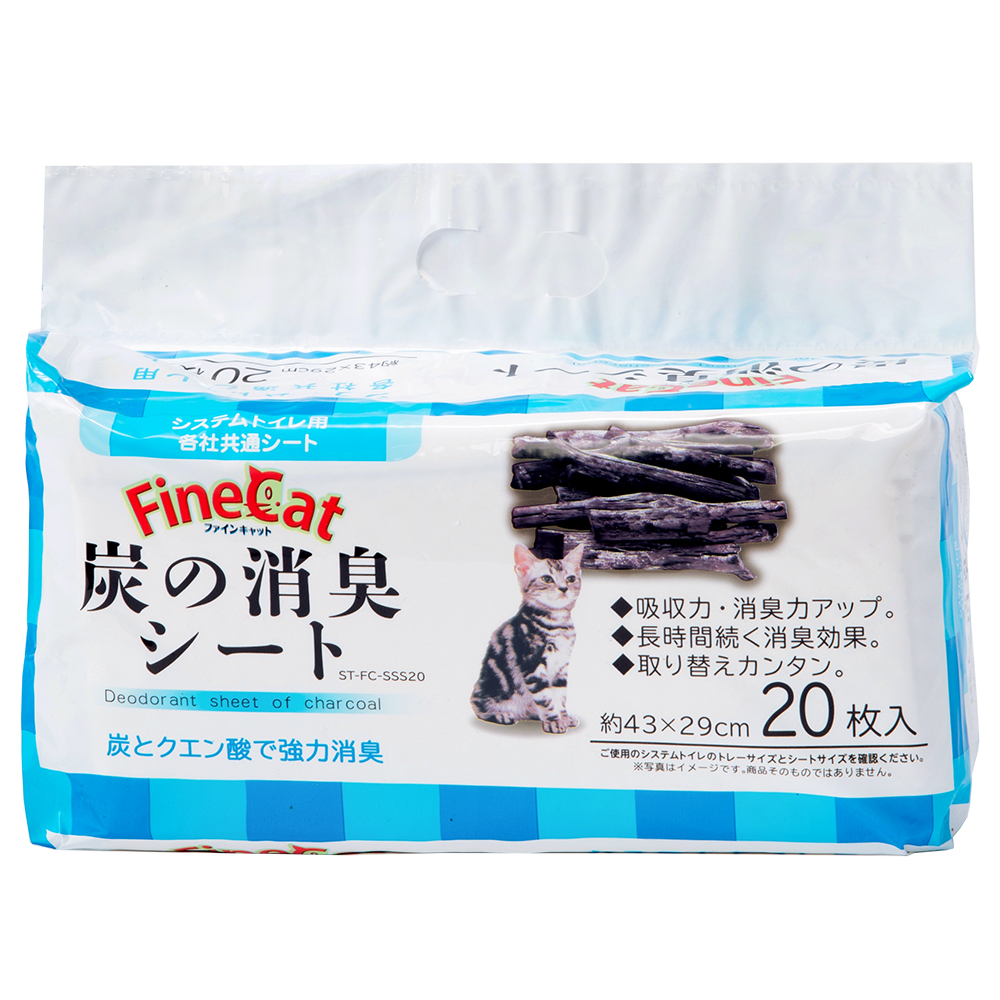 | 特長 | ●システムトイレで各社共通に使用できる、高い消臭力を発揮する炭とクエン酸を使用したシートです。 ●猫砂を通過したオシッコをすばやく吸収します。 ●ポリマーを従来より増量(当社比)し、ポリマーとパルプを均等に混ぜ合わせているため、吸収のムラを抑え、長時間の使用を実現しました。 ●シートの中の吸収材にクエン酸を配合し、さらにシート表面の炭ティッシュでいやなニオイを瞬時に吸着しつつ消臭効果を長時間持続します。 |