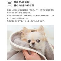| 特長 | ●わんちゃんのタオルドライにおすすめなマイクロファイバー生地のタオルです。 ●ゲージドライ中にもおすすめなタオルです。 ●お風呂上がりの足元にも敷くことで冷え防止になります。 |