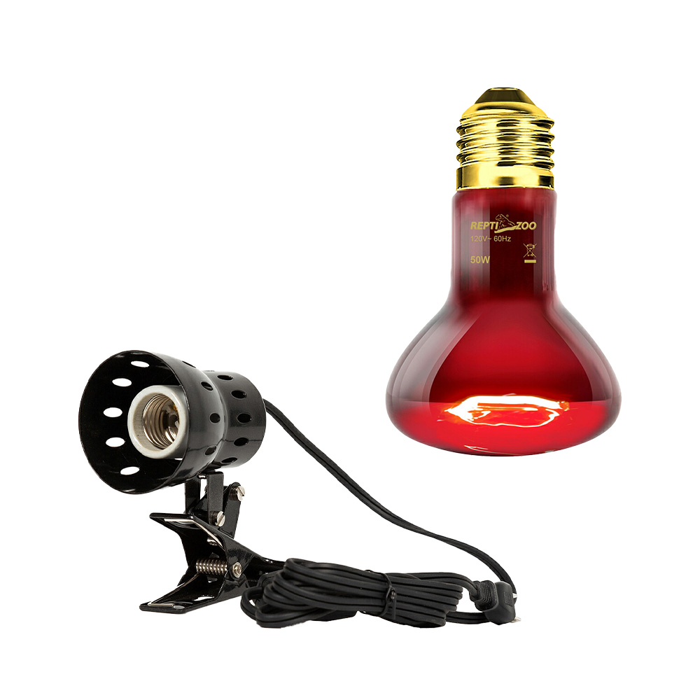 | 特長 | 【赤外線保温バスキングスポットランプ 50W】 ●爬虫類の体を温める熱を提供する赤外線保温ランプです。 ●赤い光で爬虫類の目には見えにくく、昼行性・夜行性の爬虫類の生活サイクルを妨げず使用可能です。 【クリップランプスタンド】 ●強力スプリングクリップによって簡単に取り付け固定できます。 ●360°回転および広範囲にわたって使用できます。 ●優れた熱放散効果により、本体を低温に保つことができます。 |