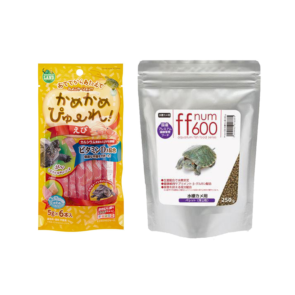 | マルカン かめかめぴゅーれ えび 5g×6本 + ff num600 水棲カメ用 ペレット(浮上性) 250g プレミアム健康管理フード | |