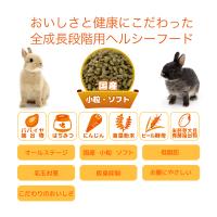 | ご注意 | ※本品はうさぎ用です。それ以外の動物には与えないでください。 ※本品は自然の原料を使用しているため、表面がべたつく場合がありますが、品質には問題ありません。 ※粒の色がパッケージの写真と異なる場合がありますが、品質には問題ありません。 ※お子様がうさぎに与える場合は、安全のため大人が監視してください。 |