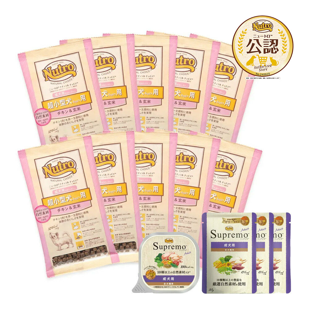 | セット内容 | ●試供品 ナチュラルチョイス 超小型犬用 成犬用 チキン&玄米 30g×10袋 ●ニュートロ シュプレモ 成犬用 ミニパウチ 35g ×3袋 ●ニュートロ シュプレモ 成犬用 トレイ 100g ×1個 |