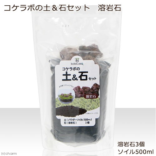 | 特長 | ●コケのレイアウトに適した土と石のセットです。 ●容量2L程度の小型の容器でコケのレイアウトを楽しむ際におすすめです。 ●コケを育成する際の保湿に役立つほか、ガラス容器など底土が見える容器ではコケの緑色を引き立たせます。 ●溶岩石は独特の茶色と、表面にでこぼこがあります。 |