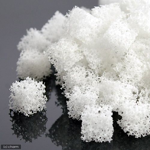 | ご注意 | ※セットする前に必ず流水でもみ洗いしてからご使用ください。 ※親水性のある素材ですので、水を含むと膨張し体積が増加します。多少の余裕をもって、セットするようお願いいたします。 ※外部式フィルターに使用する場合は、ろ材コンテナ最上段には必ずウールマットをご使用ください。 ※本品は、多孔質のスポンジ状の成形商品のため、新しいものを投入したばかりの状態では物理的に泡がたちます。 ※品質上問題はありません。また、成分が溶け出している訳ではありませんので、ご安心ください。 ※この現象は、本品に水が浸透してバクテリアが定着することで落ち着きます。期間にして1〜2週間程度はこのような現象が続きます。予めご了承ください。 ※変色している場合もございますが、品質には問題ありませんので安心してお使い頂けます。 ※プロテインスキマーを使用する場合は、オーバースキム(スキマーから泡があふれ出す現象)してしまうことがあります。ご注意ください。 |