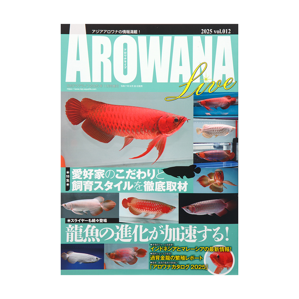 | 内容 | 年1回発売のアジアアロワナと大型魚の専門誌「アロワナライブ」の第12弾!!今回は、紅龍の本場インドネシア、過背金龍の本場マレーシアで現地取材し最新情報をレポート!ほかにもアジアアロワナに魅せられた愛好家を取材し、そのこだわりと飼育スタイルを紹介!もちろん、最新&最高の龍魚を取り揃えた「アロワナカタログ」も充実!アジアアロワナの魅力と最新情報を満載してお届けします! 【目次】 ●究極の“赤”は、ここにいた!進化の秘訣をインドネシアで探る! □本場のアロワナコンテスト「NUSATIC」 □進化が止まらぬアロワナファーム「ONE RED」 □世界屈指の仕上げ職人「BrotheRED」 □Reindy氏の新ブランド「RED RONIN」 □チャンピオンが生まれる場所「88 Red Galley」 □カリマンタン取材紀行「AGRO MEGA ARWANA」 □アロワナマイスター「SUWANDI RED」 □新風を吹き込む赤い彗星「DUO TIANG ARWANA」 □インドネシアに現れた新鋭「DASTAN AROWANA DEPOK」 □赤を極める、型を磨く「HD RED」 ●Arowana Keeper’s Room 総勢12名の飼育スタイル拝見「アロワナ愛好家お宅訪問」 ●新鮮!清潔!栄養満点! 手軽で便利な「冷凍飼料のススメ」 ●2025 AROWANA GALLERY! SUPER RED/MALAYSIA GOLDEN/BIG FISH GALLERY ●バンジャールレッドの真実を知るファーム 「クレスナプサカ ティルタレスタリ」 ●過背金龍を世界へ発信 「フォーエバーアロワナアクアカルチャー」の歩み ●ついに誕生したマレーシアゴールデン 過背金龍の国内繁殖に成功 ●きれいな水を保つための便利グッズ「フィシュレット」 ●アロワナにおける白点病の原因と対策 ●まんが アクアな猫の躾け方「アロワナライブ」出張編 |