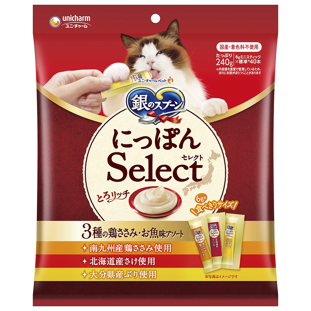 | 銀のスプーン にっぽんSelect とろリッチ 3種の鶏ささみ・お魚味アソート 鶏ささみ&さけ&ぶり使用 240g(6g×40本) | |