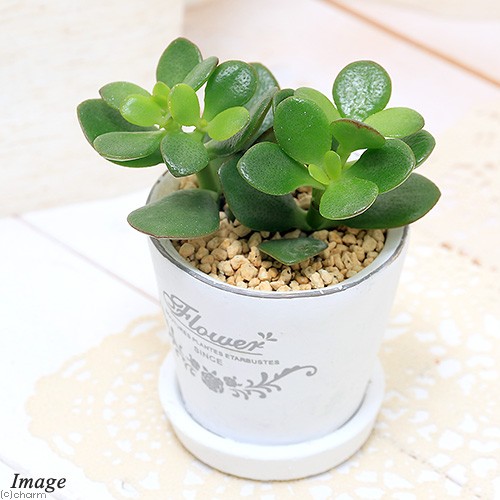 | クラッスラ 花月(金のなる木) 陶器鉢植え フレグランドラウンドポットXXS(1鉢) | |