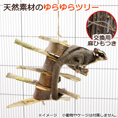 | 特長 | ●国産の天然木とパパイヤの幹の皮を使用した手作りの小動物用おもちゃです。 ●ケージの天井から吊るすことができ、レイアウト素材として便利です。 ●ゆらゆら揺れて、よじ登ることが好きな動物にピッタリです。 ●安心素材でかじることができますので、小動物の歯の伸びすぎ予防やデンタルケアにも効果的です。 ●着色料や保存料は使用しておりません。 ●小鳥の足場や休憩場所にご使用いただけます。 ●紐をかじってしまっても、交換用麻ひもがセットなので安心です。 |