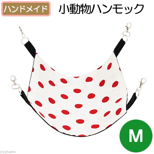 | 特長 | ●寝床や遊び場として使える小動物用のハンモックです。 ●ケージの雰囲気を壊さないシンプルな水玉模様。 ●破れにくいデニム生地を使用し、しっかりとした作りで安心です。 ●様々なケージに設置しやすいMサイズです。 |