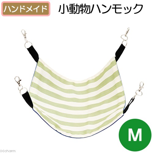 | 特長 | ●寝床や遊び場として使える小動物用のハンモックです。 ●ケージの雰囲気を壊さないシンプルなストライプ模様。 ●破れにくいデニム生地を使用し、しっかりとした作りで安心です。 ●様々なケージに設置しやすいMサイズです。 |